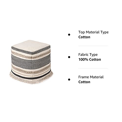 REDEARTH · UNSTUFFED Pouf Ottoman Cover Textured Storage Cube Boho Bean Bag Footrest Stool for Living Room, Bedroom,Nursery,Farmhouse, Kidsroom, Patio, Gym; 100% Cotton (20"X20"X20"; Black)