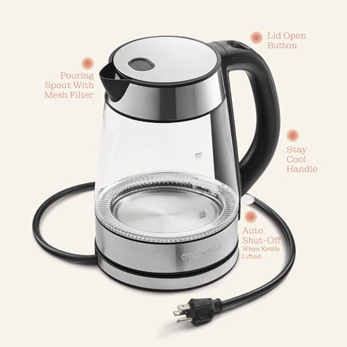 Speed-Boil Electric Kettle For Coffee & Tea - 1.7L Water Boiler 1500W, Borosilicate Glass, Easy Clean Wide Opening, Auto Shut-Off, Cool Touch Handle, LED Light. 360° Rotation, Boil Dry Protection