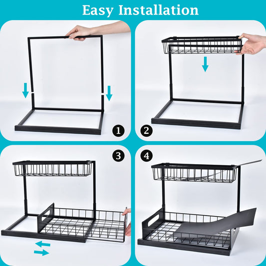 REALINN Under Sink Organizer, Pull Out Cabinet Organizer 2 Tier Slide Out Sink Shelf Cabinet Storage Shelves, Under Sink Storage for Kitchen Bathroom Cabinet