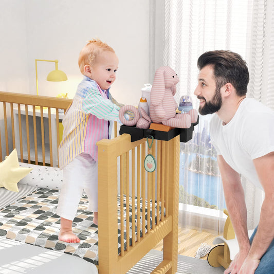Ronlap Folding Bedside Shelf, Bunk Bed Shelf Organizer for Top Bunk Clip On Nightstand for Loft Bed Plastic Bedside Shelf Tray for Kids with Cupholder Hooks Hanging Cup, Small Size, Black