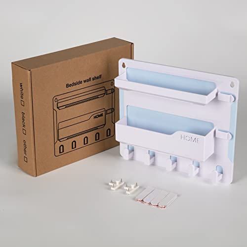 YONGAIJIA Bedside Wall Mount Shelf, Adhesive Bedside Organizer for Remote、Phone、Glasses. Bedside Accessories Storage suitable for College Dorm 、bunk bed 、 Bedroom、Rv(White)