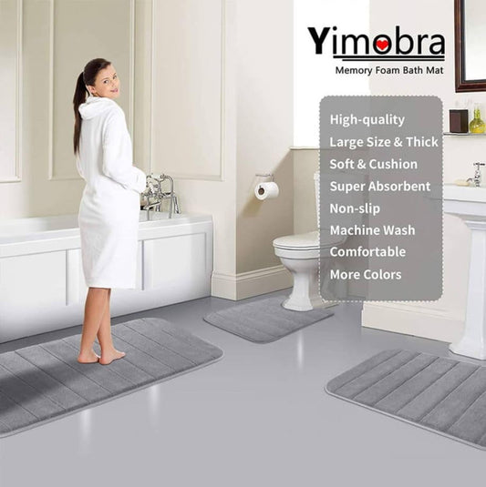 Yimobra Memory Foam Bath Mat Rug, 24 x 17 Inches, Comfortable, Soft, Super Water Absorption, Machine Wash, Non-Slip, Thick, Easier to Dry for Bathroom Floor Rugs, Grey