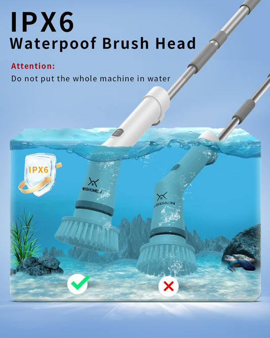 WISHOMEIN Cordless Electric Spin Scrubber: Power Shower Scrubber with Long Handle for Cleaning Bathroom, Dual Speed Electric Spin Brush, Cleaning Brush with 6 Brush Heads for Bathtub Tile Floor